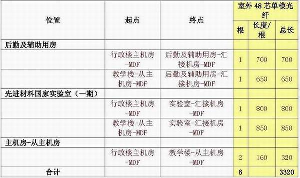主干線纜用量統(tǒng)計(jì)表