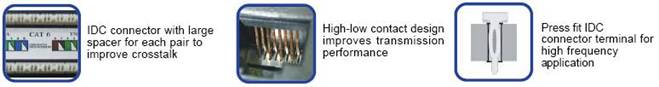 DINTEK(鼎志)六類模塊與配線架接口的高低觸點(diǎn)與無(wú)焊點(diǎn)壓接