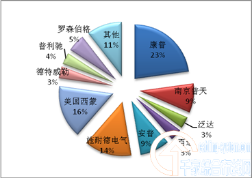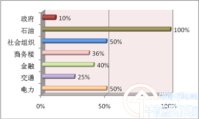 圖四中的石油一欄,康普的市場(chǎng)份額是100%,原因在于其調(diào)查的57個(gè)項(xiàng)目中,只有一個(gè)“石油”項(xiàng)目剛好由美國(guó)康普中標(biāo),這也證明康普的產(chǎn)品遍布各個(gè)領(lǐng)域和行業(yè),包括一些比較少用到網(wǎng)絡(luò)的行業(yè)也清楚知道康普的信譽(yù),由此可見(jiàn),康普品牌的影響力非同一般,不愧為行業(yè)“老大”。從圖中還可看出,社會(huì)組織及電力方面的市場(chǎng)份額均占據(jù)一半以上,表明康普應(yīng)用重心在這兩個(gè)行業(yè)。金融、商務(wù)樓、交通及政府行業(yè)也都占據(jù)不賴的份額。