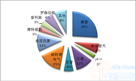 2004-2008年品牌中標(biāo)萬(wàn)點(diǎn)項(xiàng)目的信息點(diǎn)百分比(康普占26%)