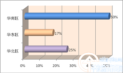 圖二體現(xiàn)康普中標(biāo)的“萬(wàn)點(diǎn)”點(diǎn)項(xiàng)目主要集中在華北、華東、華南區(qū),尤其是占了華南區(qū)的50%;華北,華東區(qū)也分別占其25%和17%。