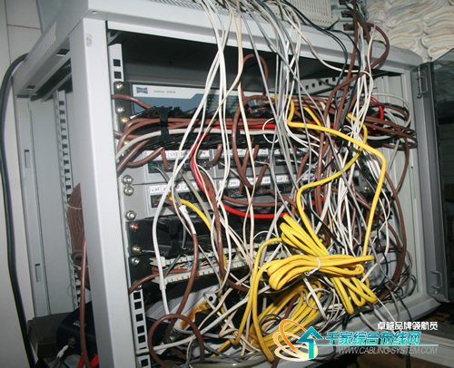 先看看筆者朋友所在公司小機(jī)柜內(nèi)的“炒面式”線纜,僅僅半年時間就變成這樣,雖然信息點(diǎn)數(shù)很少,但后期管理還是非常不方便,常常跳線跳不到相應(yīng)的位置上,其主要原因就是隨著設(shè)備的增加,連接的線纜越來越多,日積月累造成了這樣的結(jié)果。這只是筆者朋友公司小型用戶機(jī)柜情況,如果在大機(jī)房內(nèi),大機(jī)柜內(nèi)“炒面式”線纜帶給用戶的問題會更多:網(wǎng)絡(luò)MAC十分困難、端口的利用率降低、散熱遇到問題、非常難整理……看到這些,讓我們不由想起綜合布線智能化管理系統(tǒng)的重要性。