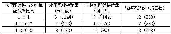 水平配線架與交換機配線架比例 水平配線架數(shù)量(端口數(shù)) 交換機配線架數(shù)量(端口數(shù)) 配線架總數(shù)(端口數(shù))