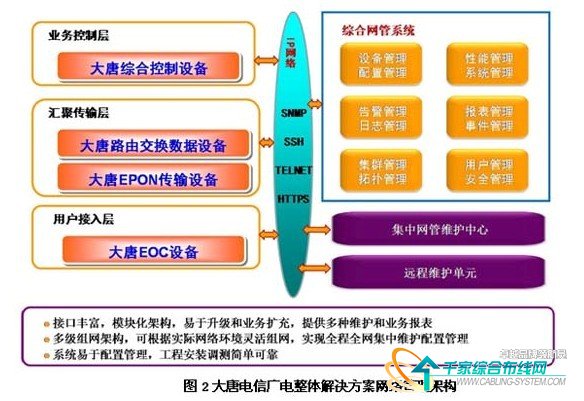 大唐電信作為國內(nèi)重要的通信設備制造商,專注于網(wǎng)絡發(fā)展和演進,運用豐富的網(wǎng)絡開發(fā)經(jīng)驗投入廣電行業(yè)整體解決方案,提出全程全網(wǎng)的網(wǎng)絡管理模式。