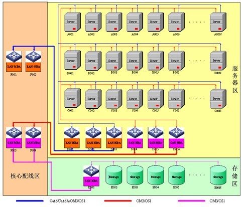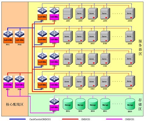 數(shù)據(jù)中心機(jī)房布線系統(tǒng)由網(wǎng)絡(luò)布線系統(tǒng)和SAN網(wǎng)布線系統(tǒng)兩部分組成,是機(jī)房工程的重要內(nèi)容之一,在機(jī)房系統(tǒng)工程中,必須對(duì)機(jī)房工程內(nèi)的各種布線進(jìn)行統(tǒng)一規(guī)劃設(shè)計(jì),布線橋架路由要與機(jī)房?jī)?nèi)其他各種管路/橋架進(jìn)行統(tǒng)籌考慮,以確保機(jī)房各系統(tǒng)實(shí)施的合理有序。數(shù)據(jù)中心綜合布線工程以其靈活性、擴(kuò)展性實(shí)現(xiàn)高效的、冗余布線管理,整個(gè)結(jié)構(gòu)化布線系統(tǒng)應(yīng)全面避免單點(diǎn)故障隱患情況的出現(xiàn)。
